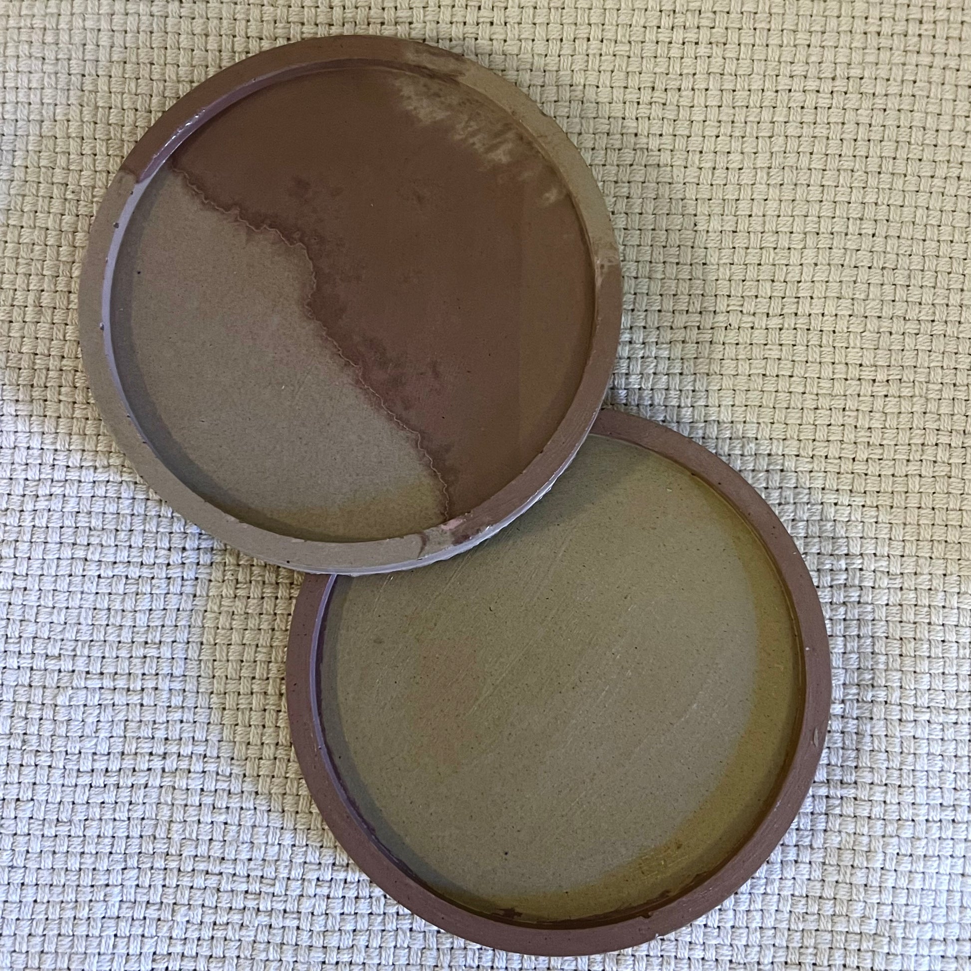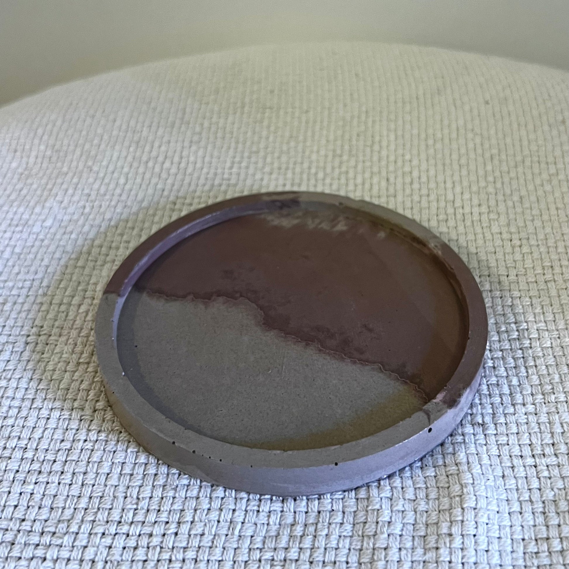 Pladanj izrađen ručno od betona u jedinstvenom dvoobojnom dizajnu – spoj tamnosmeđe i svjetlije betonske nijanse daje mu prirodan i moderan izgled.
