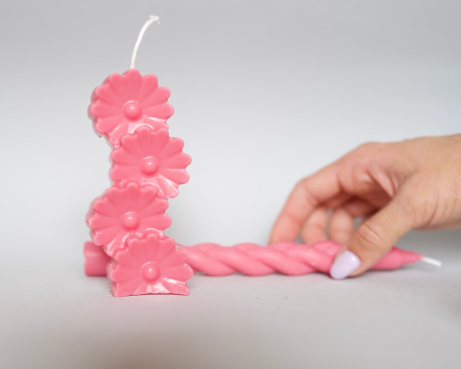 Nježna ružičasta boja i sofisticirani oblik čine ovu svijeću savršenim spojem elegancije i topline.