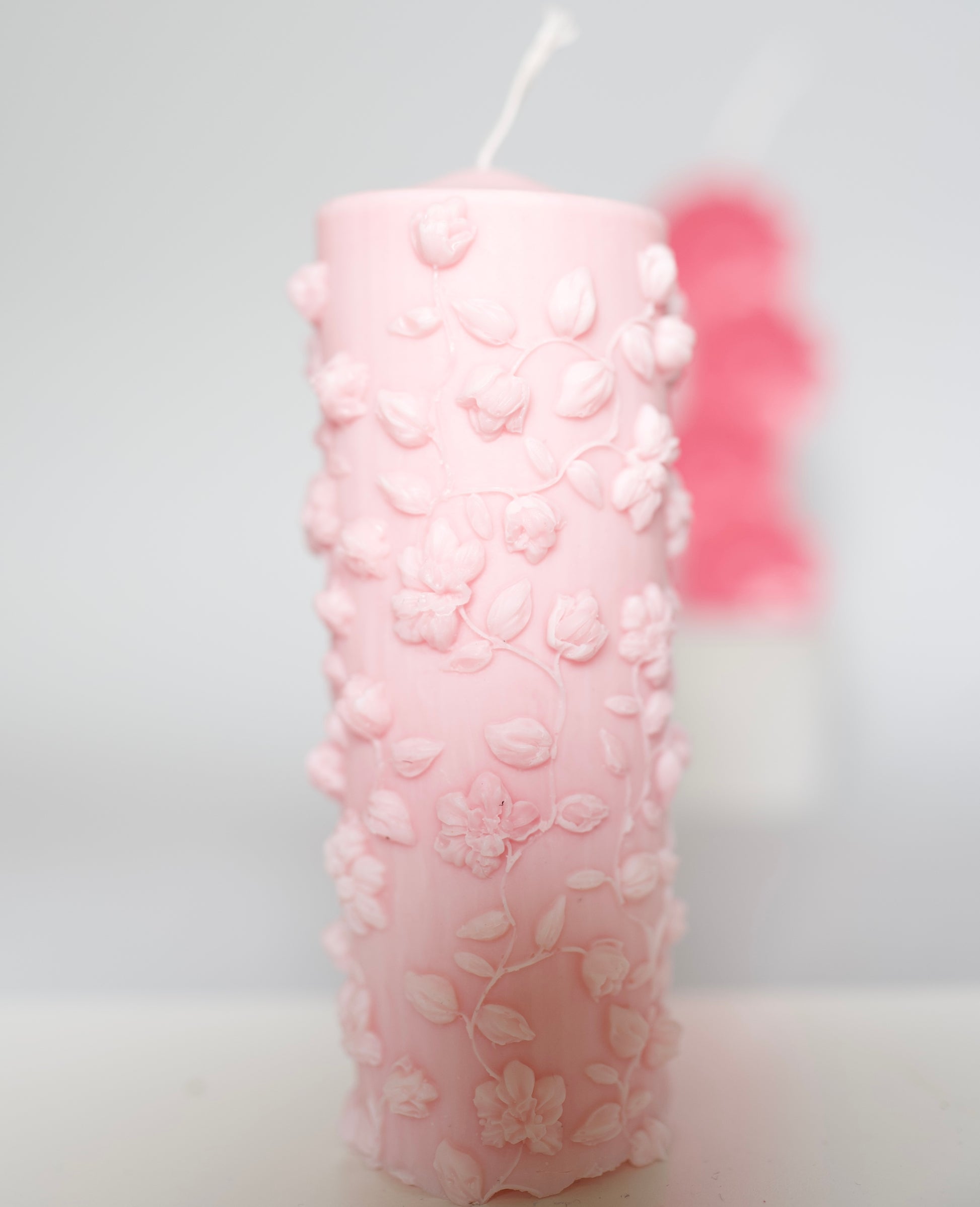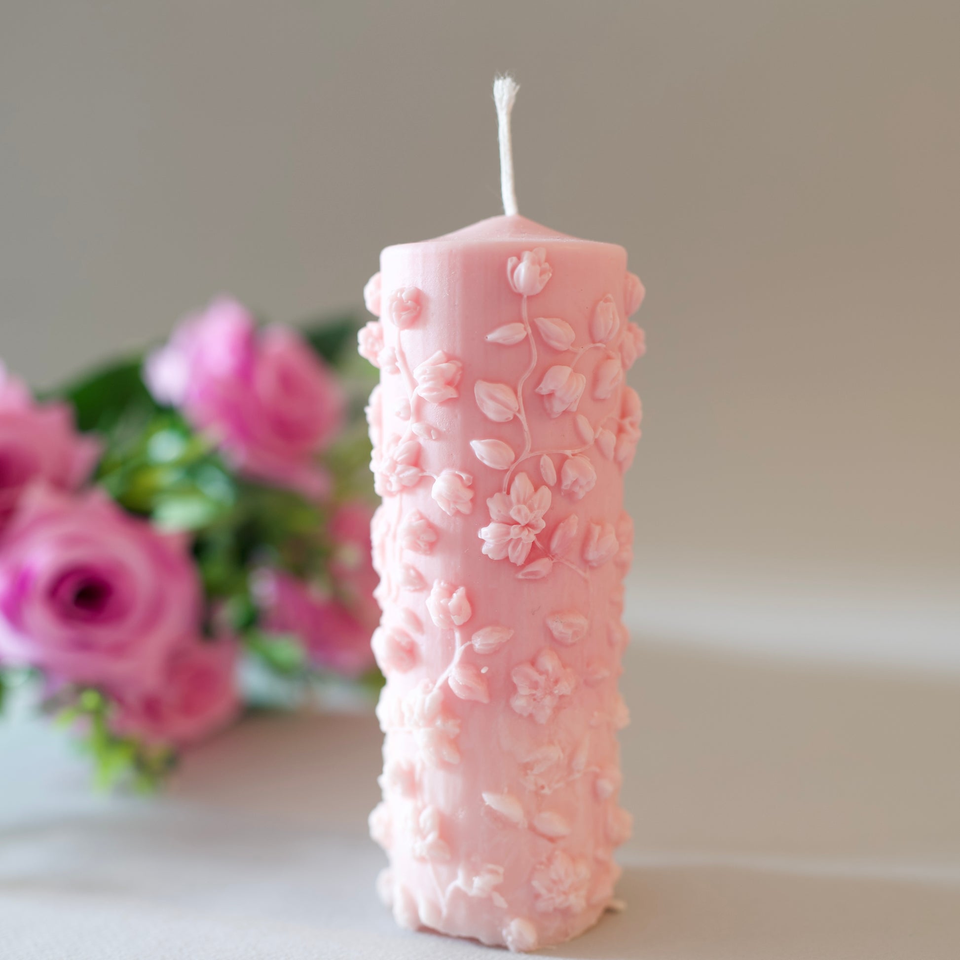 Otkrijte luksuznu sojinu svijeću s mirisom bergamota i jasmina, ručno izrađenu s 3D uzorkom cvijeća.