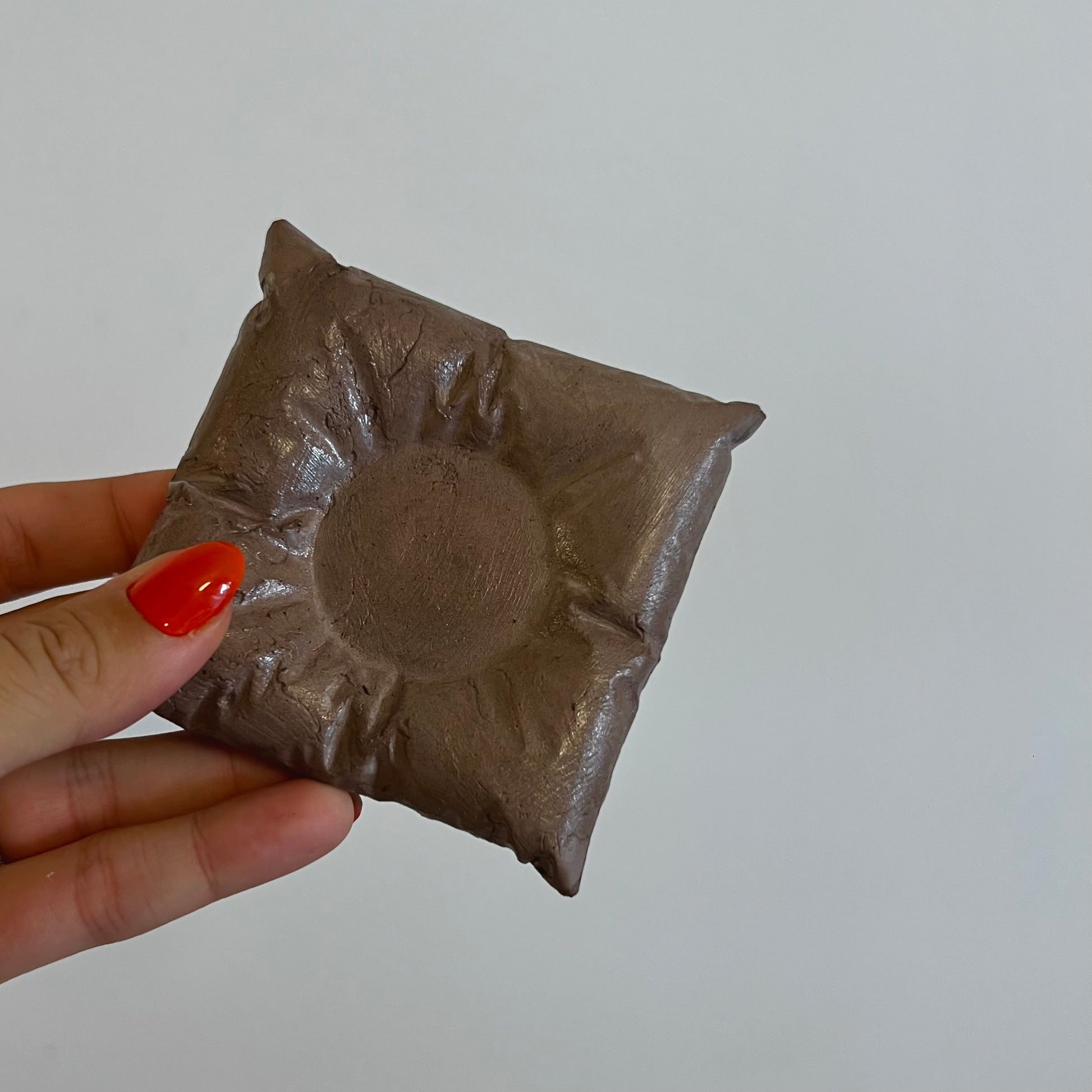 Ovaj ukrasni jastučić ručno je izrađen od betonske smjese smeđe boje. Minimalističkog je izgleda te se radi toga odlično uklapa u svaki prostor.