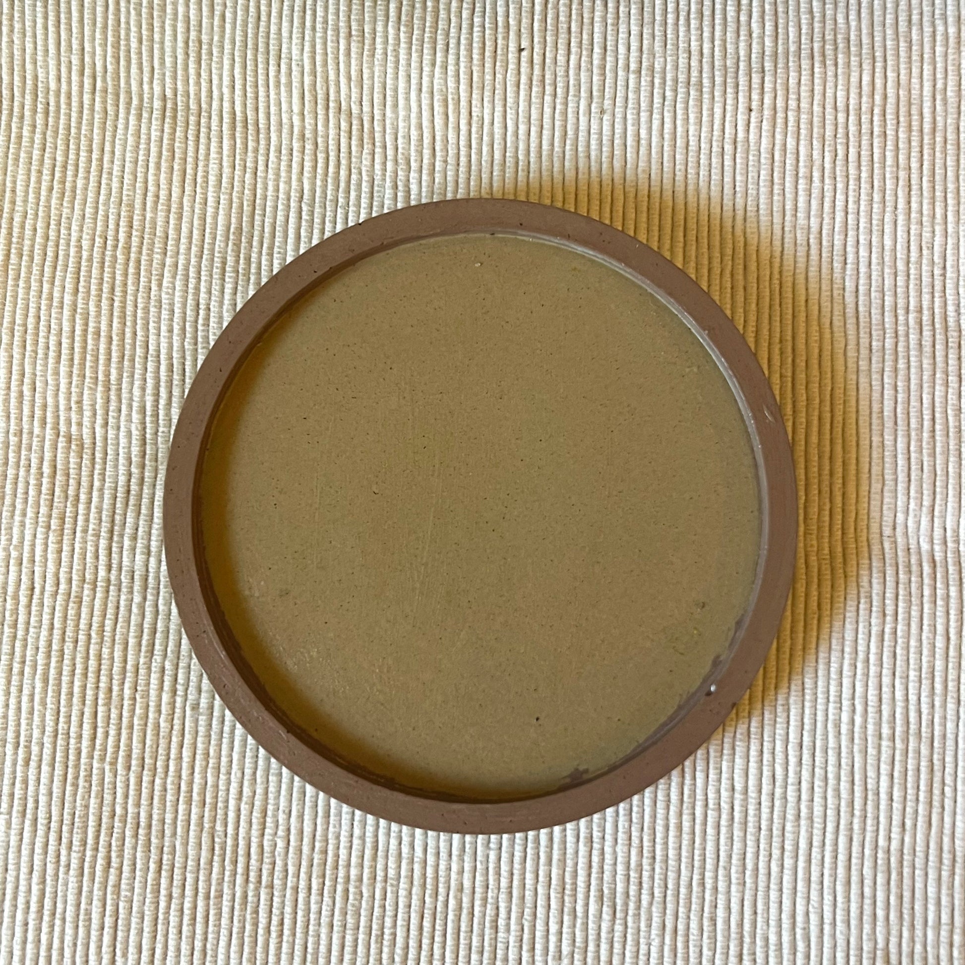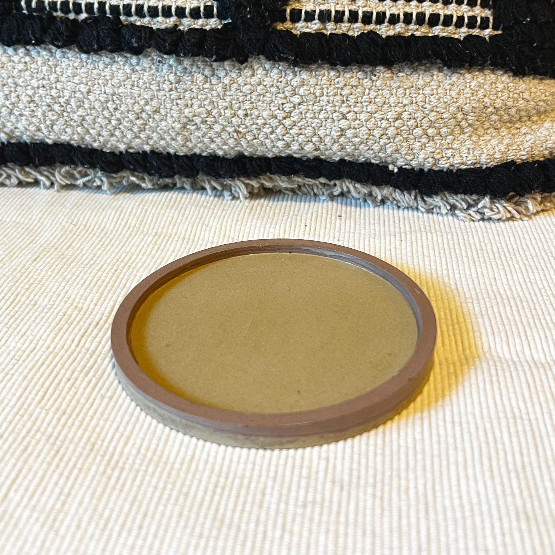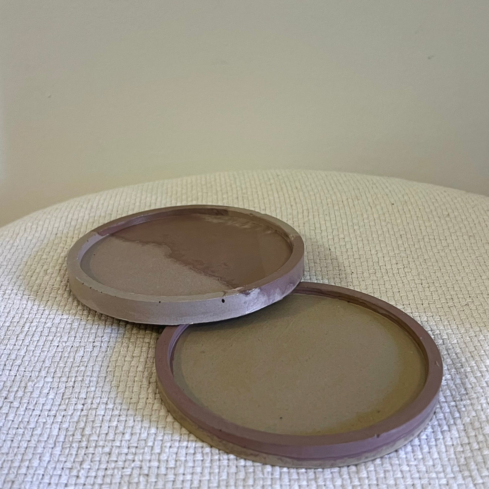 Ovaj pladanj izrađen je ručno od betonske smjese i dolazi u modernoj dvobojnoj kombinaciji, tamnosmeđi rub i svjetlija središnja površina.